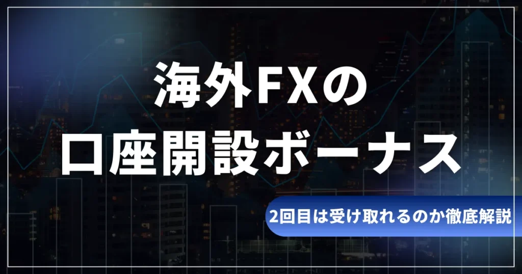「海外FXの口座開設ボーナスは2回目も受け取れる?」 「別のメールアドレスで登録すればバレない?」 海外FXの口座開設ボーナスは、入金なしでトレードを始められる人気の特典です。 「使い切ったからもう一度受け取りたい」と考えるトレーダーも少なくあ... -